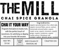 organic sprouted gluten-free rolled oats, organic coconut flakes, pecan, walnut, homemade almond butter, organic maple syrup, organic cinnamon, organic ginger, organic cardamom, organic vanilla extract, Himalayan salt