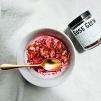 A granola that wears rose colored glasses. Crunchy, radiant + softly sweet. Infused with strawberry, beetroot + earthy glow.